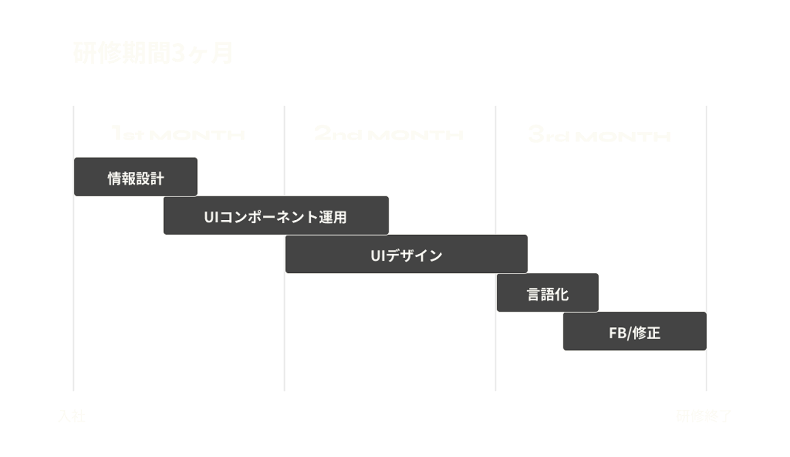 エンジニア育成プログラム「ファストス」 3ヶ月の研修期間でプログラミングスキルを身につけられるよう、現場に出ているエンジニアメンバーで作成した育成プログラムです。